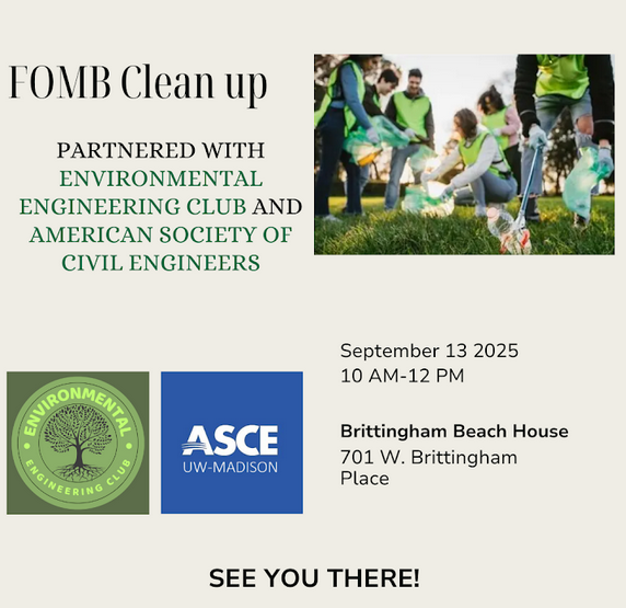 Come join us on Saturday, September 13, 2025 from 10am until 12pm as we help the Friends of Monona Bay (FOMB) with one of their monthly shoreline cleanup projects. Register here!