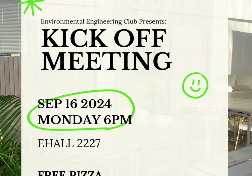 Come join us for the 2024-2025 Environmental Engineering Club Kick Off Meeting! There will be FREE PIZZA!!